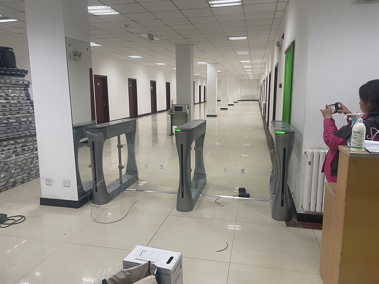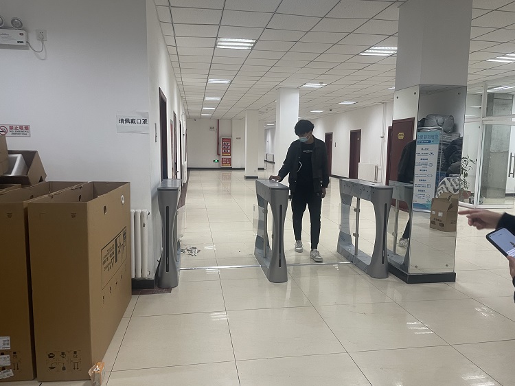 安裝一套學校宿舍用??惦p通道擺閘,解決了閑雜人員進入宿舍管理問題。