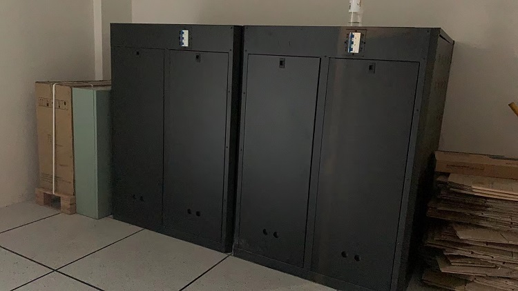 和諧家園小區智能弱電系統包含車輛出入管理、監控系統、樓宇對講、高空拋物智能分析等,現該工程已經接近尾聲,正在進行機房安裝工作。